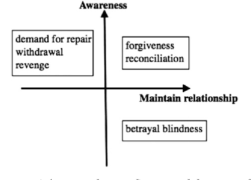 If a victim is aware of the harm, he or she then has the choice to demand repair, withdraw from the relationship, forgive the perpetrator, or enact revenge (see image above). After a demand for repair or withdrawal, the victim’s next options depend on the perpetrator’s response.